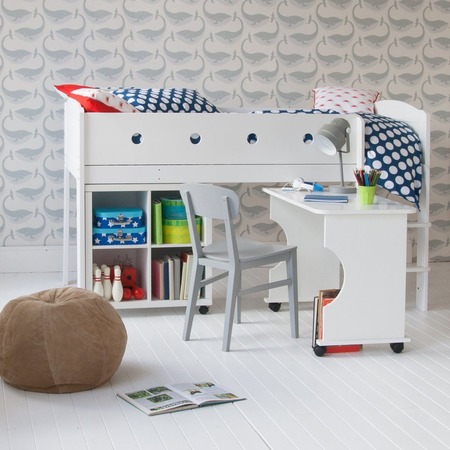 A roll out desk that can pull in and out from under a bed is ideal for saving space in a child’s bedroom. Options like mid sleeper beds often include beds that can hide away or be pulled out for studies.